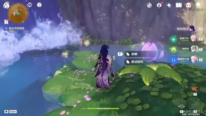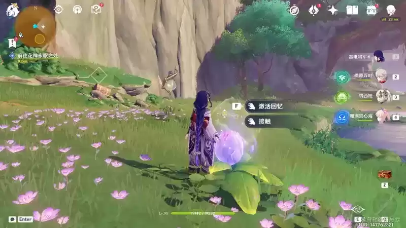 之后退出调整界面,选择“接触”并跟随花苞至任务点1-2。