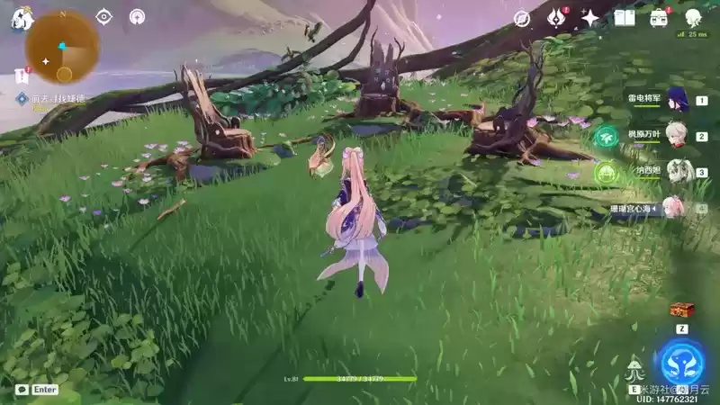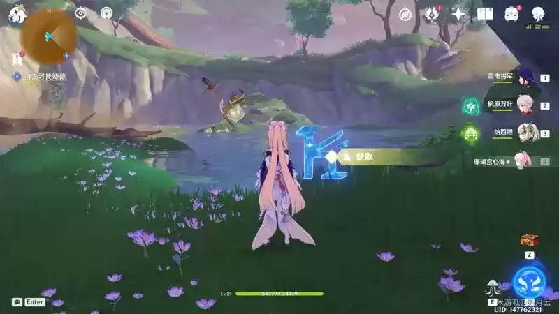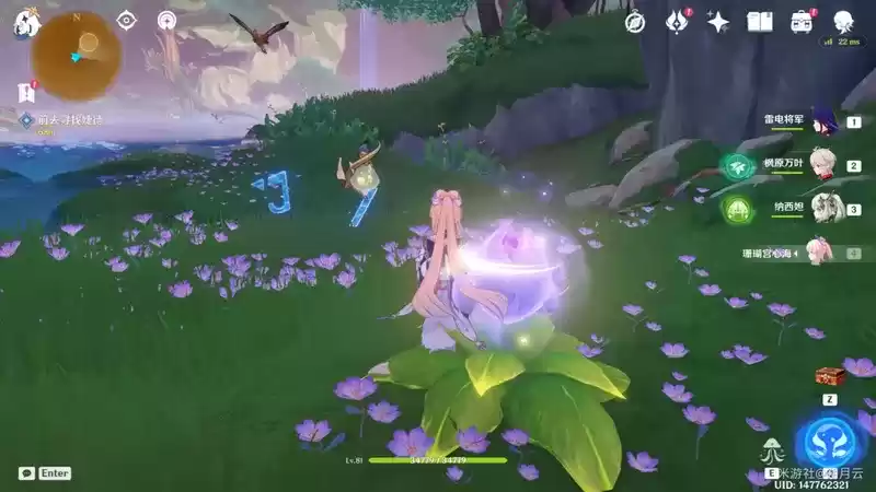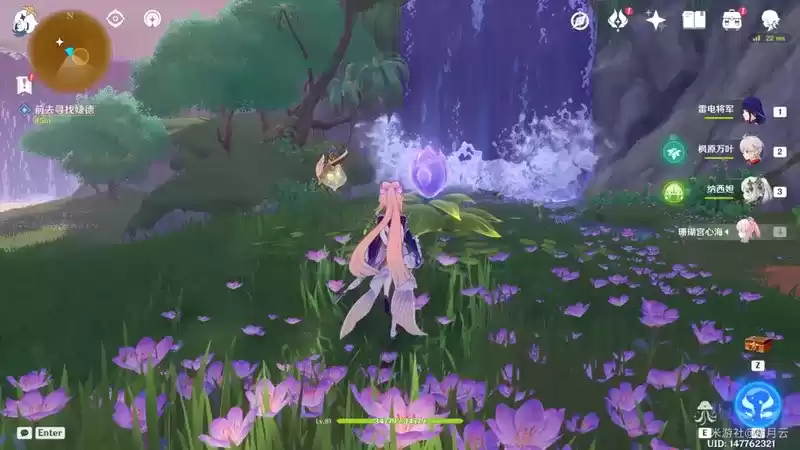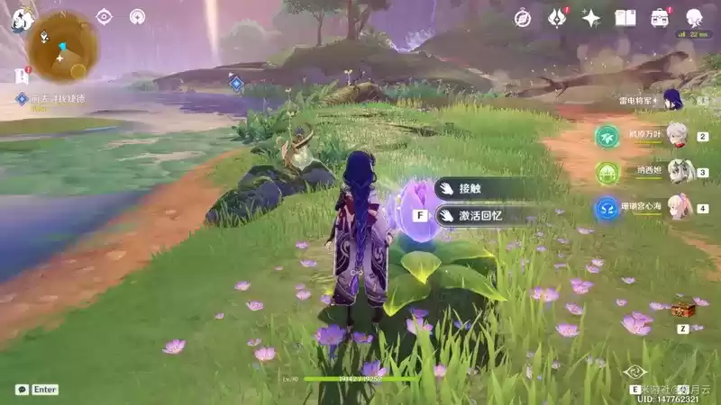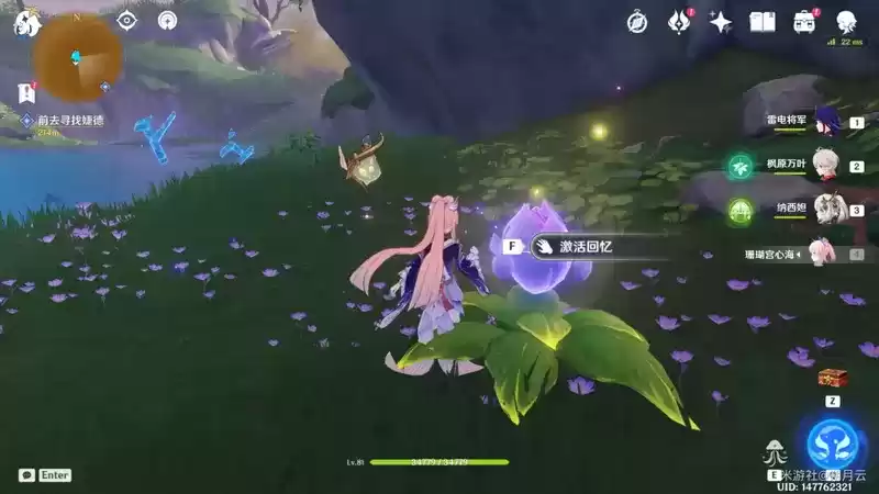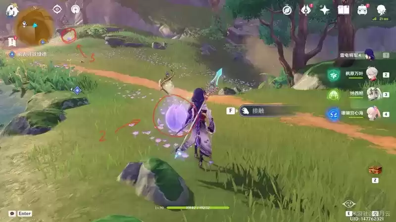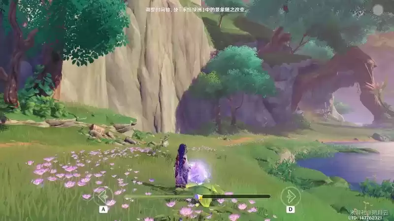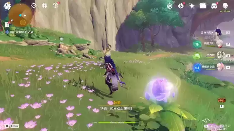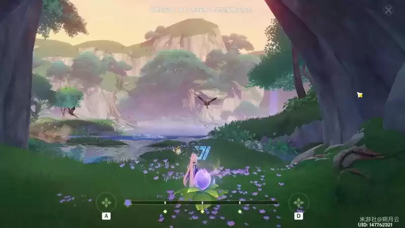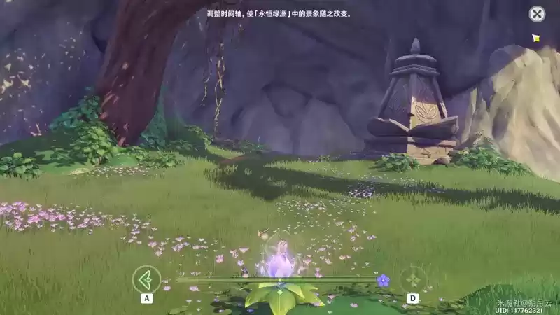 树下会显示出宝箱和草神瞳,再次接触花苞并跟随,到达任务点3-2。