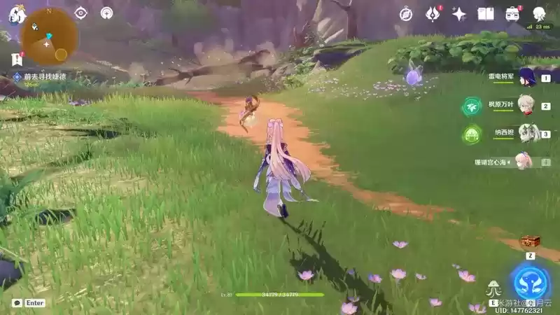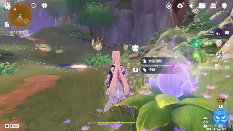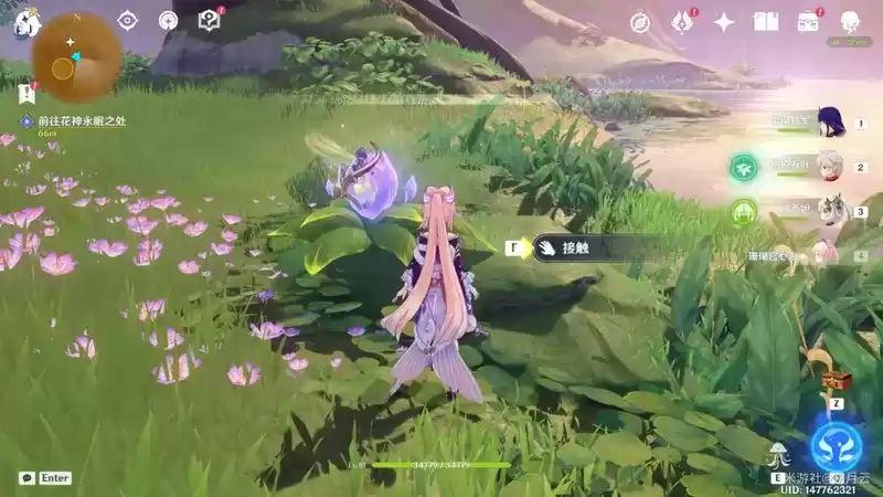 之后退出调整界面,选择“接触”并跟随花苞至任务点1-3。