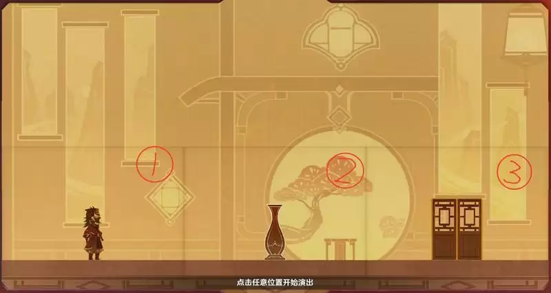 为了描述方便把画片从左往右命名为①②③,下同。拖动下方画片交换位置,直接交换①和②,等待小纸人走到门边即可通关