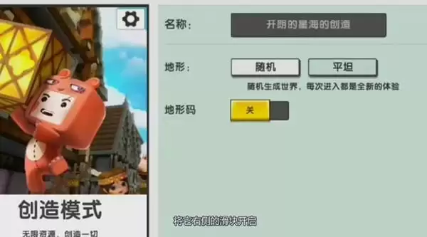 1、首先,进入游戏以后,点击开始游戏;2、然后,开始点击创建新世界;3、接着选择游戏模式,再点击设置图标;4、选择开启地形码,然后输入地形码即可。详细答案:1、首先,进入游戏以后,