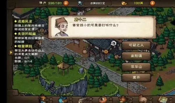 2、再去找店小二打听,点击“可疑之人”,告诉我们阿七就是小偷。