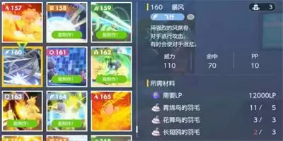 12000LP、青绵鸟的羽毛*5、花舞鸟的羽毛*3、长翅鸥的羽毛*3。