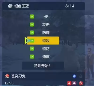 5、最后选择需要提升个体值的属性,点击特训;