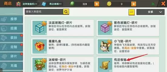 2、找到“传送卷轴”,使用它就可以瞬间传送到家的位置。