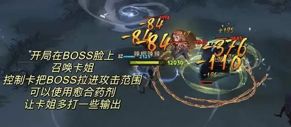 1、贴脸放卡姐,把首领拉到攻击范围内。