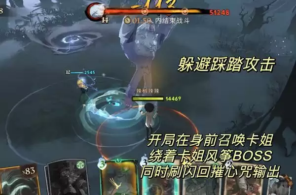 2、我们就在卡姐周围走位,及时躲避踩踏攻击。
