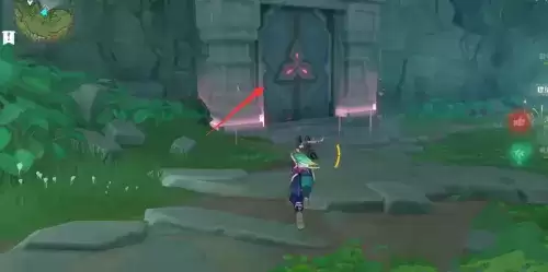 3、来到绿色屏障前,拾取草种子,去激活草元素方碑。