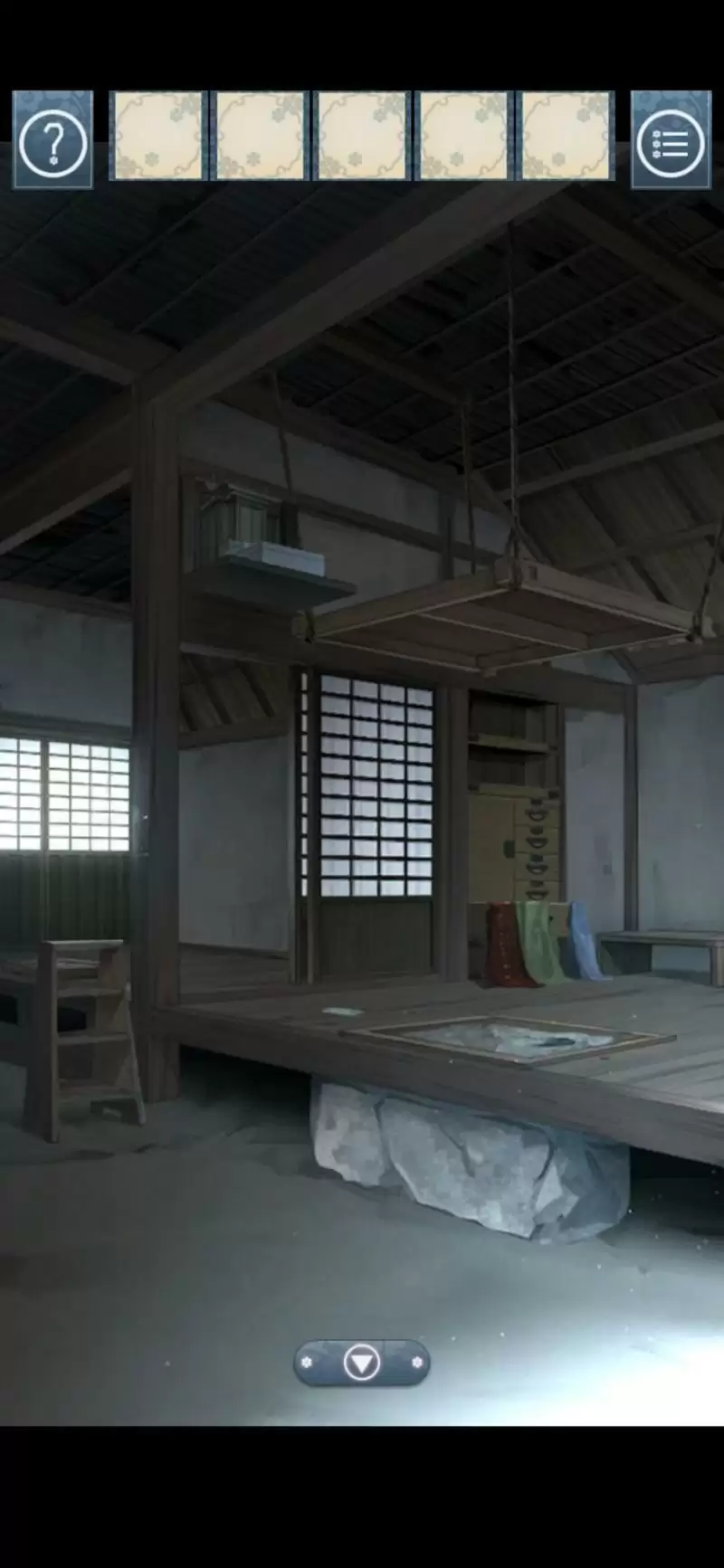 2、就近原则,先来到厨房把架子上的盐和灶台上的米装好,然后来到井边装上水,最后来到有一幅画的房间装上味增,不要着急回去,再去看看游戏最开始的地方,发现三个果实后面有图案,点进去以后记下来,然后回到拿衣服的房间