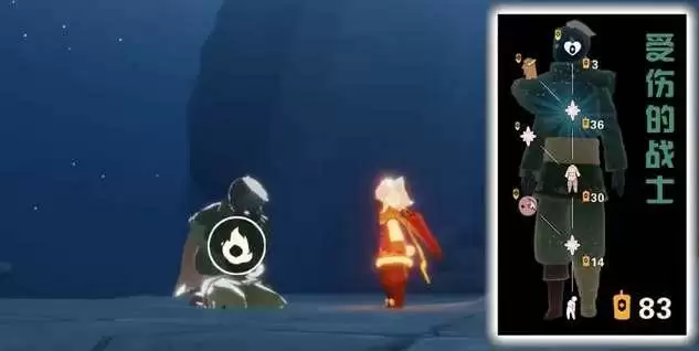 4、受伤的战士先祖兑换图:包含斗篷、面具和裤子,兑换所有物品需要83个蜡烛。
