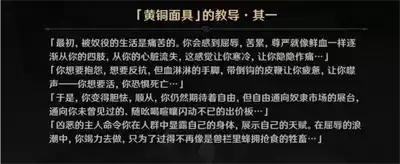 4、在打开宝箱后,就能获得神秘的石板一,阅读黄铜面具的教导其一。
