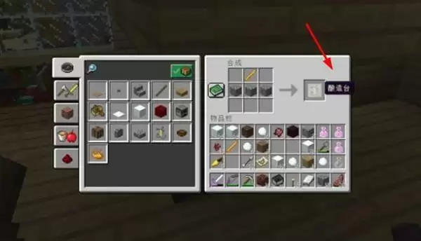 1,首先我们需要找到一个酿造台,然后右键点击进入酿造台;2,接着准备三个瓶子,左边放上烈焰粉,下面放三个水瓶,中间放下界疣,制作粗制的药水;3,接着我们在上方放上闪烁的西瓜片,就可