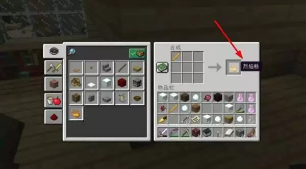 2、打开工作台,消耗一根烈焰棒,合成两袋烈焰粉。