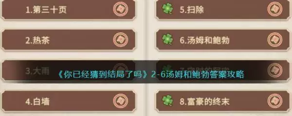 《你已经猜到结局了吗》2-6汤姆和鲍勃答案攻略
