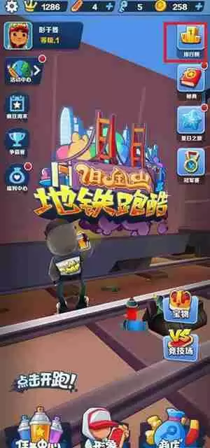 1、在地铁跑酷的首页界面中,直接的点击右上角的排行榜就能进入其中;