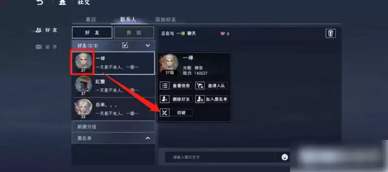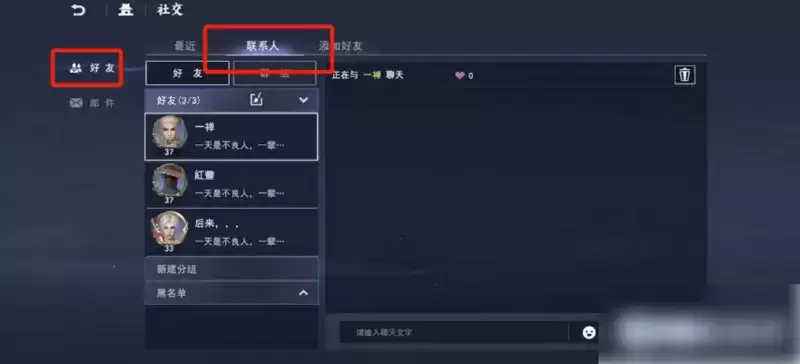 点击之后在该界面中玩家点击左侧的好友选择,再点击联系人