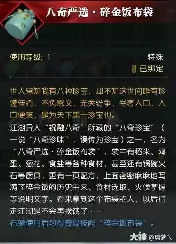 5、使用后获得趣味技能【碎金帆布袋】(可随机获得不同品质的碎金饭)~