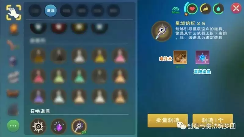 ①通过寒月木+星域结晶进行制作制作,制作1个5个信标。