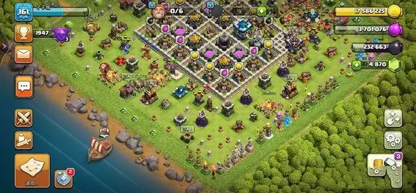 1、打开部落冲突游戏,点击左侧海面上的帆船。