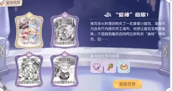 1.爱神之旅一共有四个章节,全部通关即可收获奖励。