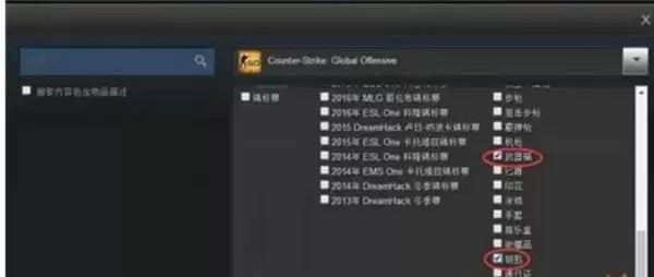 4、然后我们需要设置搜索选项,我们选择武器箱和钥匙进行勾选。