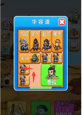 3、我们将下方两个士兵向左移动,然后让曹操往下走。