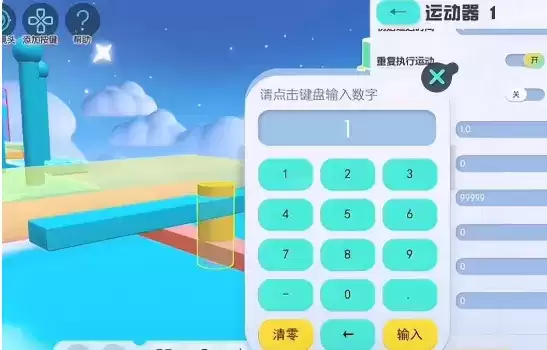 2.玩家还可以用球体绑定圆柱体,再把圆柱体绑定到冰面上,添加一个匀速直线的运动器,选择复制,可以多设置几个;