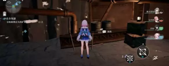 1.首先我们来到大矿区和桑博对话,他让我们寻找两个东西,根据任务提示寻找即可;