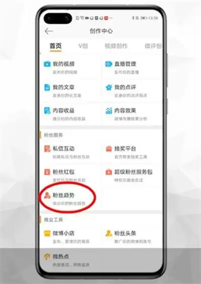 2、接着我们可以在【粉丝服务】中找到【粉丝趋势】然后点击它。