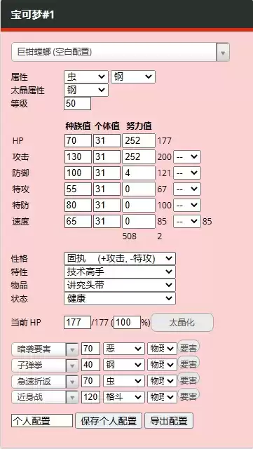 努力值:HP252 物攻252 物防6