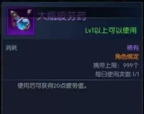 3,大瓶疲劳药:每日可使用1次,每次获得20点疲劳值。