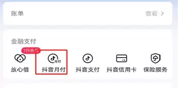 2、找到金融支付,点击抖音月付。