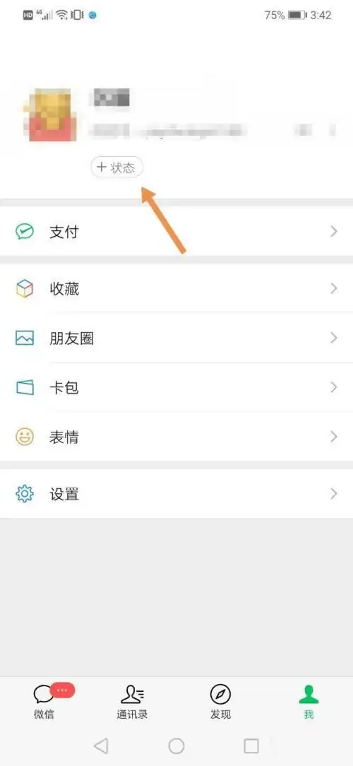 2、来到个人信息页面,点击头像下方的【状态】。