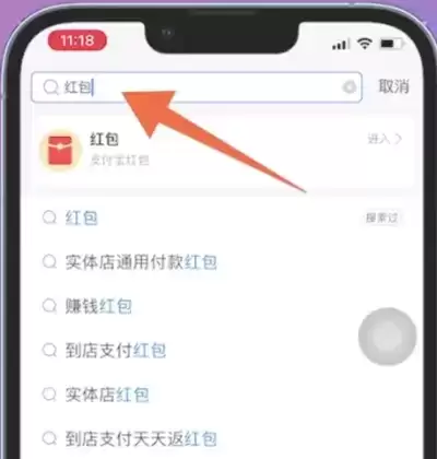 2、接着我们在【搜索栏】中输入【红包】并进行搜索。