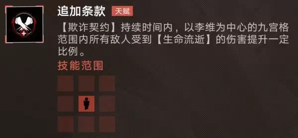接着李维的4技能被动是可以提升李维在大招持续期间,九宫格范围内敌人所受到的【生命流逝】伤害,并且这里预估是所有不同角色所施加的【生命流逝】伤害都会有所提升,如果这点确定的话,那么李维在未来的【生命流逝】队伍中的角色就会比较重要了。