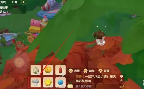2、然后我们去传送的起点,找到【向导的传送蘑菇】点击使用就可以在附近布置作为传送点的蘑菇了。