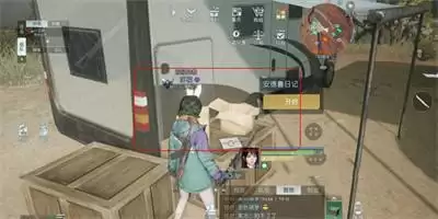 位置:位于坐标处白色房车的车厢后面的木箱上。
