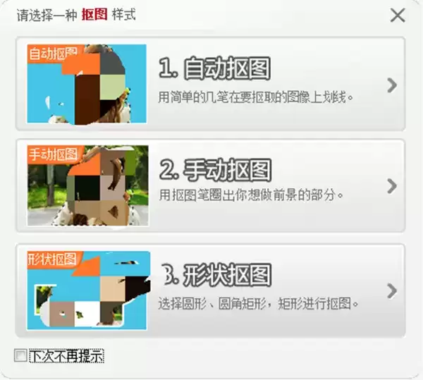 3、接着会弹出对话框让我们选择抠图方式。