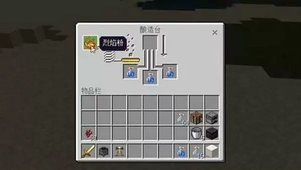 6、然后我们往酿造台作坊中放入烈焰粉。