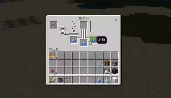 5、接着我们点击酿造台,在酿造台的下面放三个水瓶。