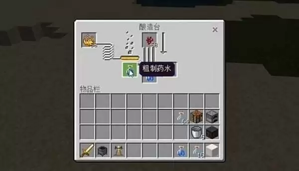 8、布置完毕后酿造台会自动 产生反应然后水瓶就会变成“粗制药水”了。