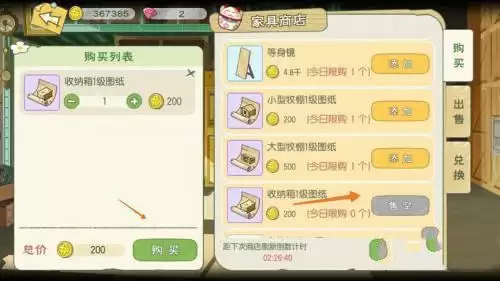 4、找到收纳箱图纸,花费200金币买下来。