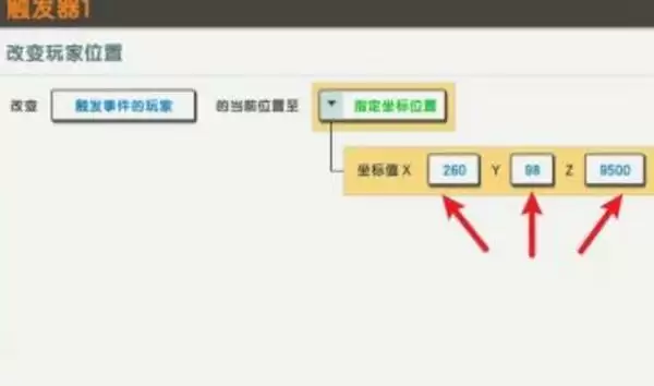 6、然后我们设置xyz的地址:(260、98、9500)。