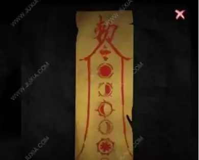 3.查看墙上的符咒,调整上面图案(将图案调整和后面阴影一致,只有“封”字能移动,但最多能移动三格)。
