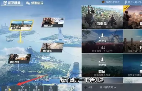2、接着我们可以在界面的左下角看到有个【特训岛】按钮,我们点击它。