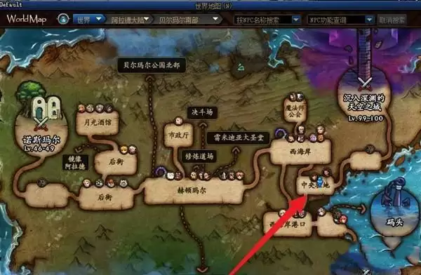 2、打开世界地图,前往中央驻地区域。