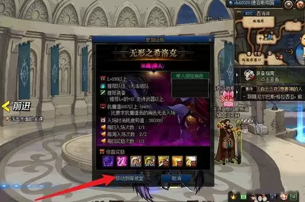 4、移动到等待室,这样就能进入希洛克征战模式了。