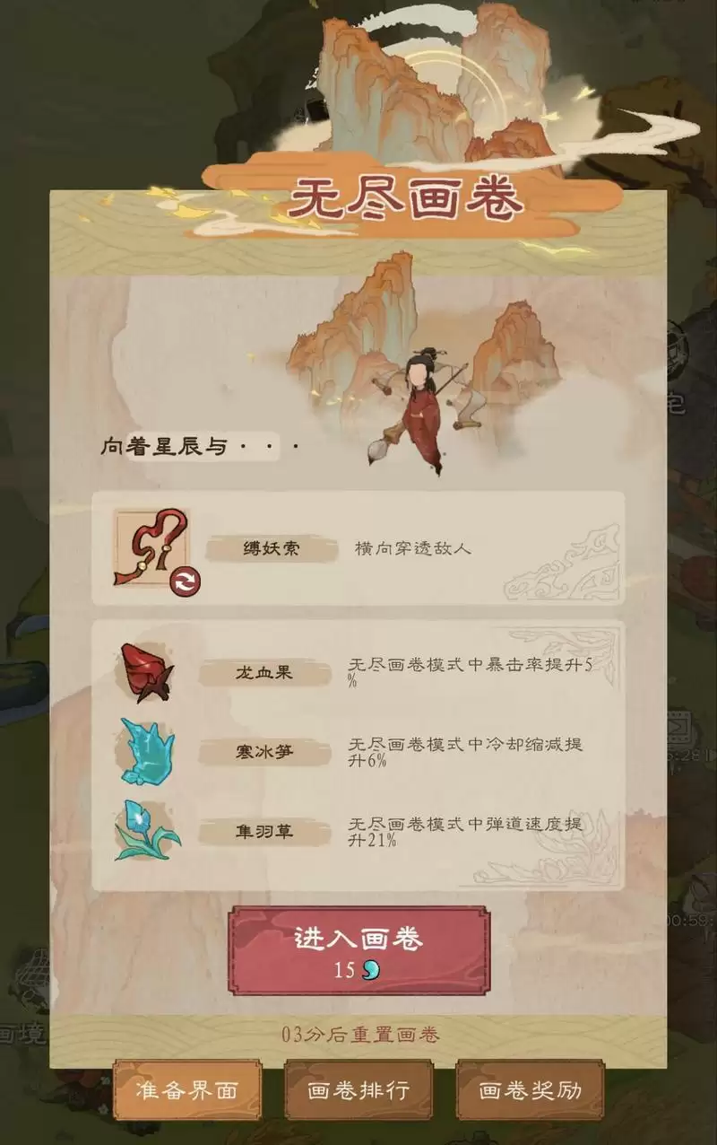 完成无尽画卷的挑战后,系统将会自动结算成绩和奖励,修行者可用朱墨到画境商人处兑换物品。