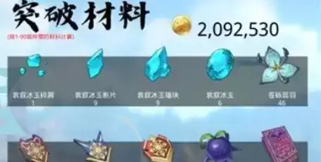 20级突破:哀叙冰玉碎屑*1、新兵的徽记*3、钩钩果*3、摩拉*20000