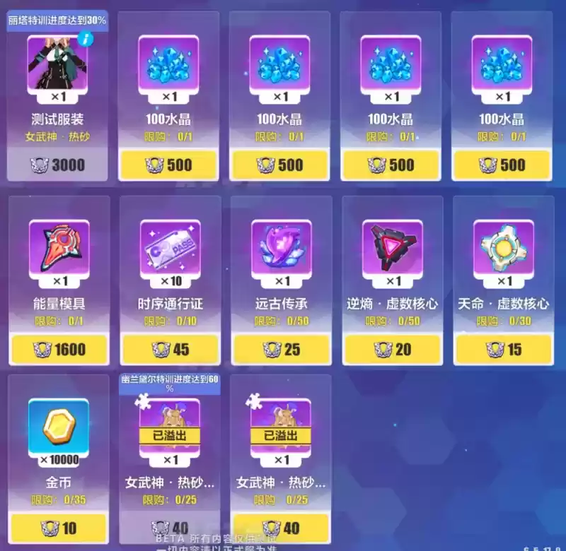 本次活动给出的奖励较为丰富,除了常规的水晶外,还有着版本新角色SP女武神·热砂的角色碎片,能量模具和热砂的适用服装——我们熟悉的不灭之刃队服。